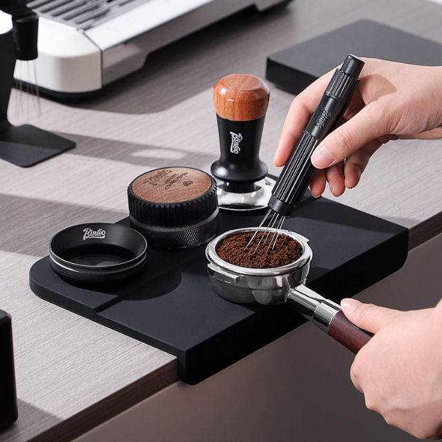 Este tapete de silicona te permite compactar, apoyar y limpiar con total seguridad y estilo. Su diseño con borde de 90° brinda un soporte firme para el portafiltro, mientras que sus perforaciones precisas te ayudan a mantener cada herramienta en su lugar.